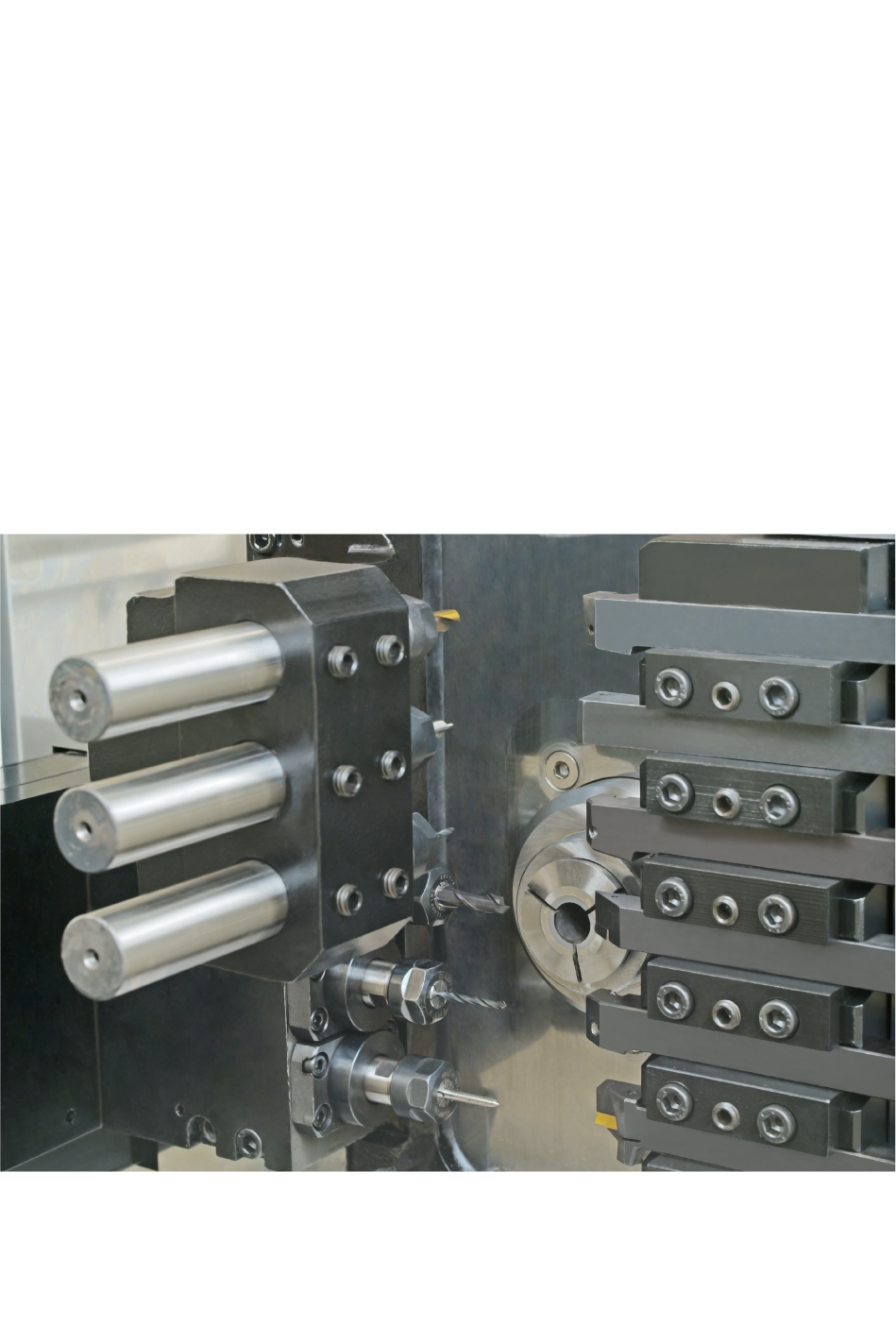 ●Unique guideless design addresses the common issue of extended tailstock (120mm-180mm) in Swiss-style lathes, reducing material waste. Eliminating the need for a guide greatly improves workpiece outer diameter ovality caused by material bending, achieving roundness comparable to turret lathes while lowering material requirements.