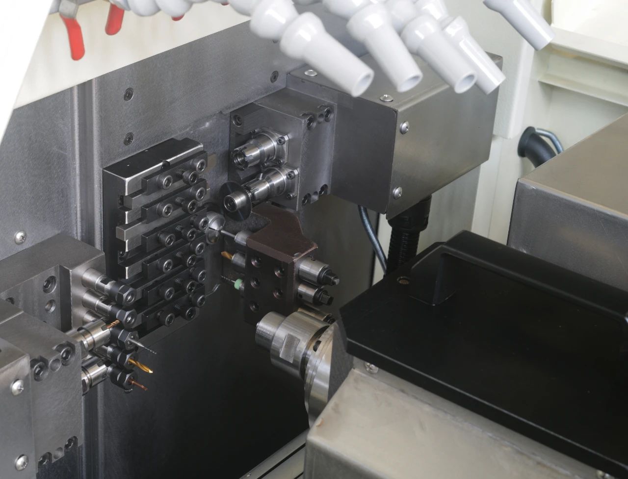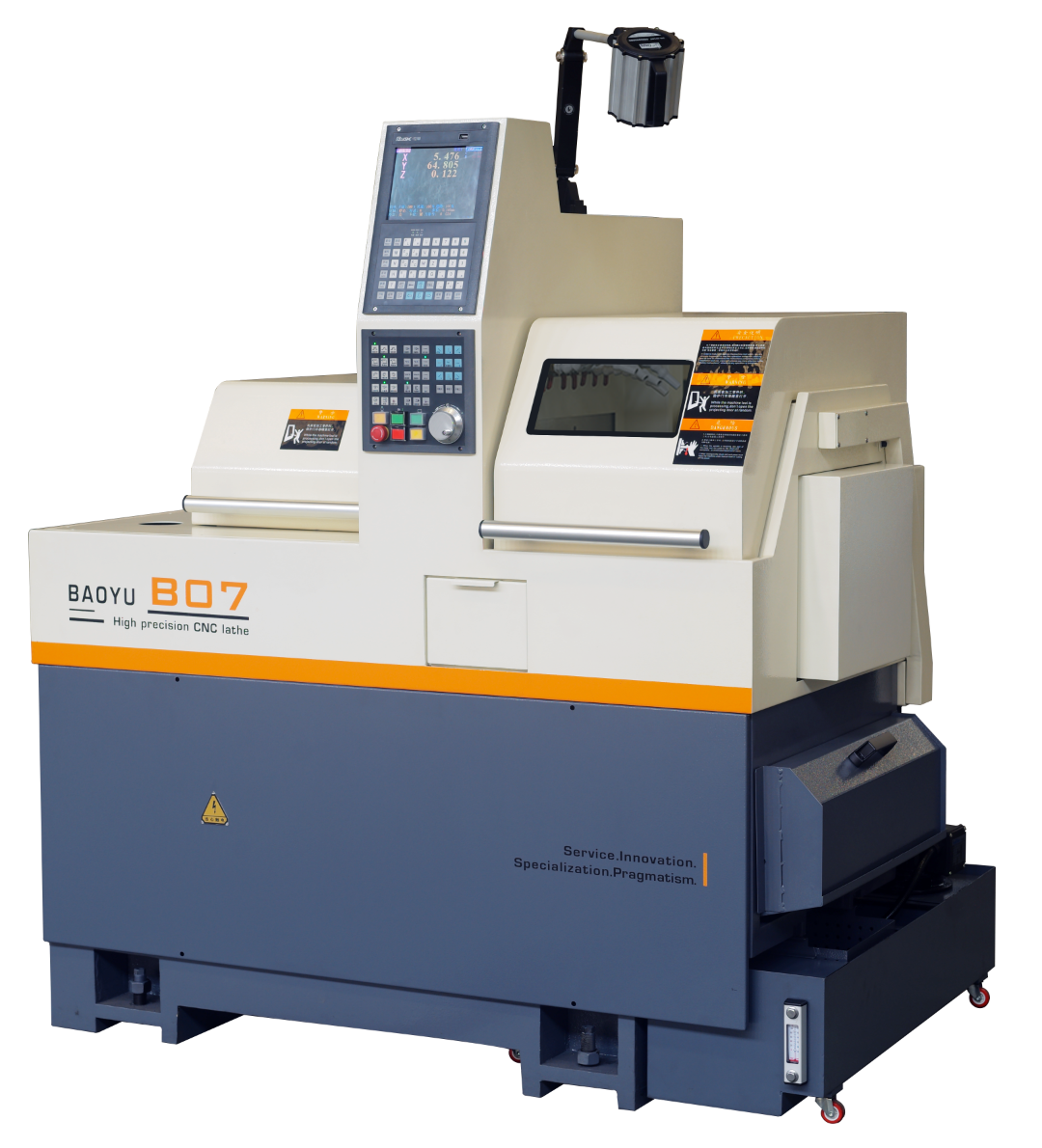 B07主轴箱移动型数控机床是宝宇数控BYSK以手表部件、探针、连接器插头为代表,对超小径精密部件的加工而研发的新型六轴走心式车床。