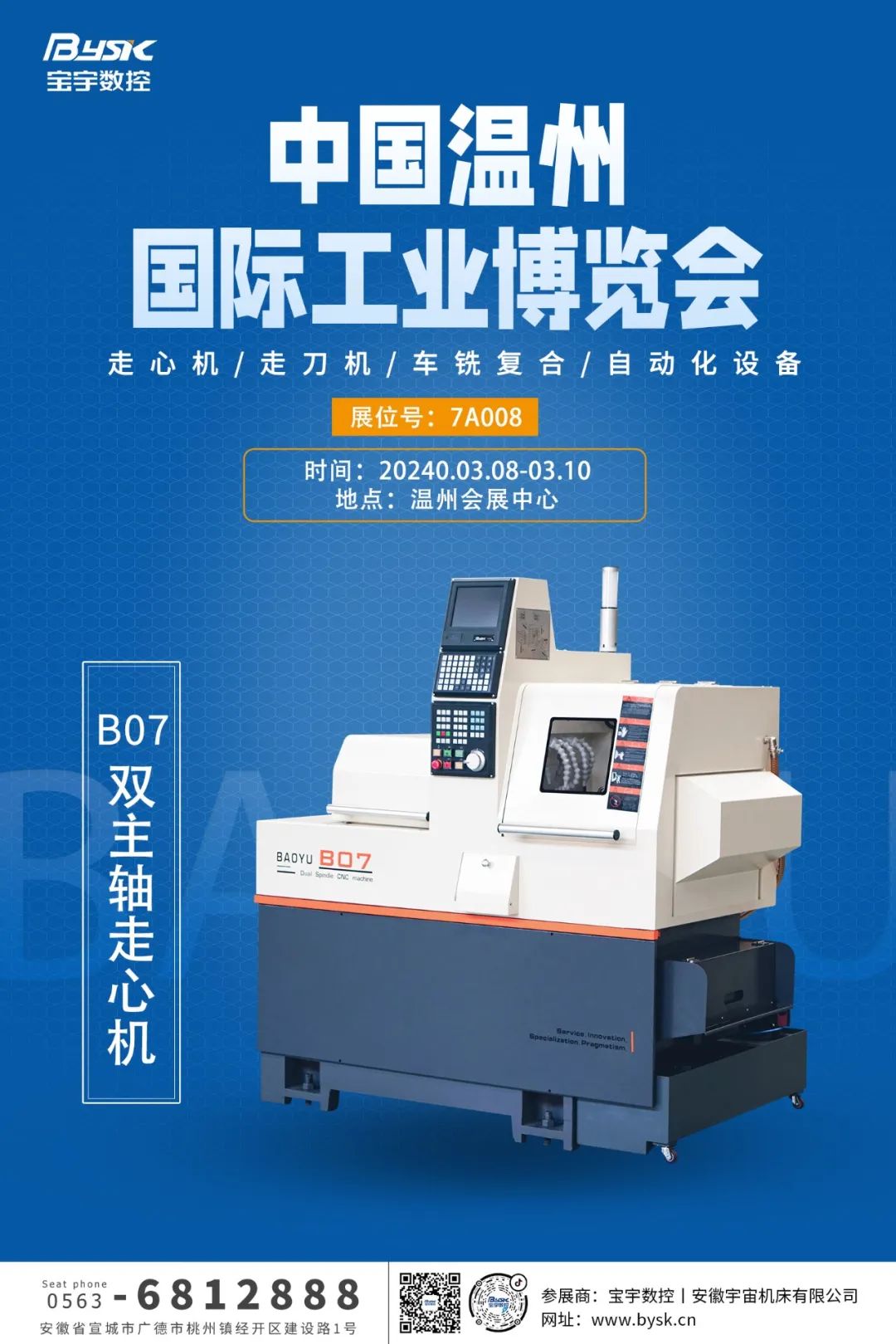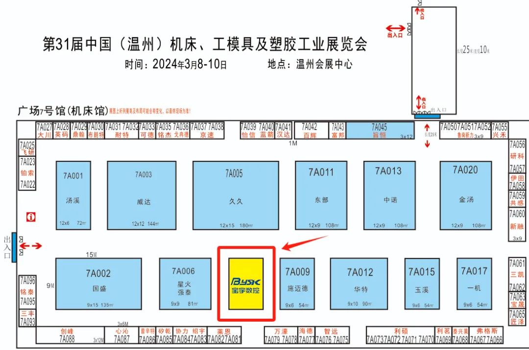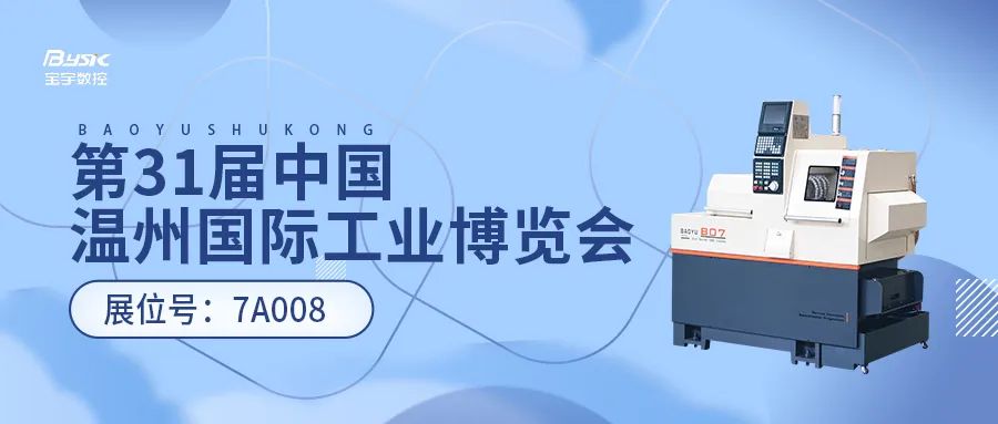 第31届中国(温州)机床、工模具及塑胶工业展览会将于2024年3月8日-10日,在浙江温州会展中心举行。该展会是中国东南沿海地区规模较大的专业工业展览会之一,对于业内人士来说是一个了解最新行业动态、寻找合作伙伴、拓展业务网络的绝佳机会。同时,对于有兴趣了解和进入制造业的个人来说,这也是一次难得的学习和探索的机会。宝宇数控期待您的到来,与您不见不散!