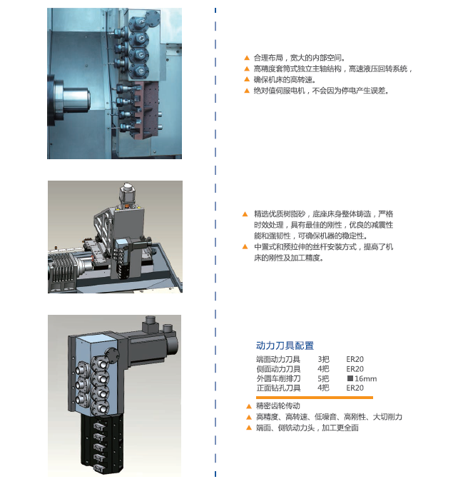 2、高精度套筒式独立主轴结构,高速液压回转系统。