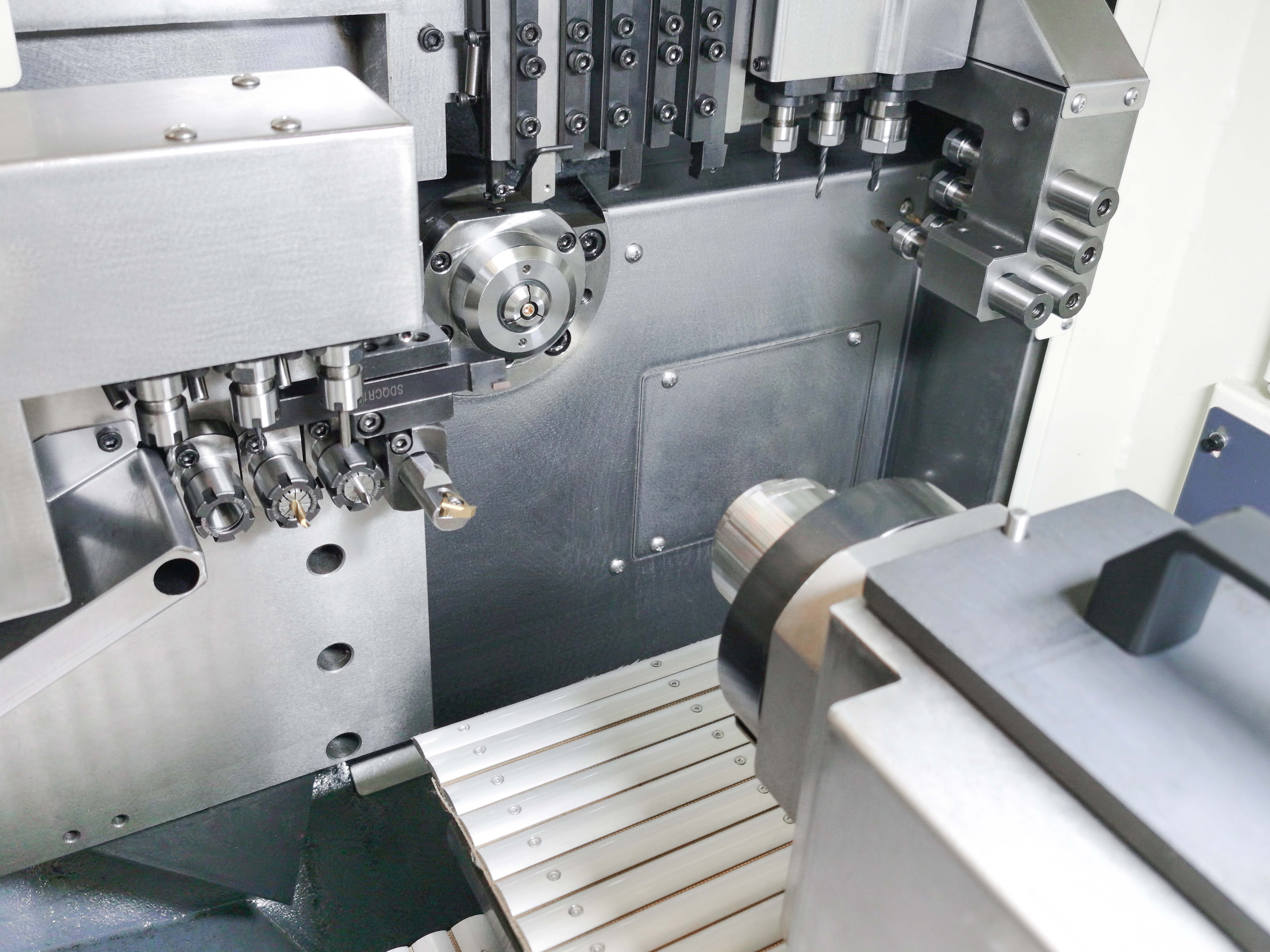 具有车铣复合加工能力,为高精度、广范围及实用性高的加工设备.该类机床适合长径比较大的 “细长轴类”零件以及“细小”“异形”零件的大批量、多品种、高精度的加工任务 ,其加工范围广泛适用于医疗、汽车、摩托车、通讯、制冷、光学、家电、微特电子、电子、钟表、手机等行业的各种高精度、多批量、外形复杂的轴类零件及精密细小零件的复合加工。
